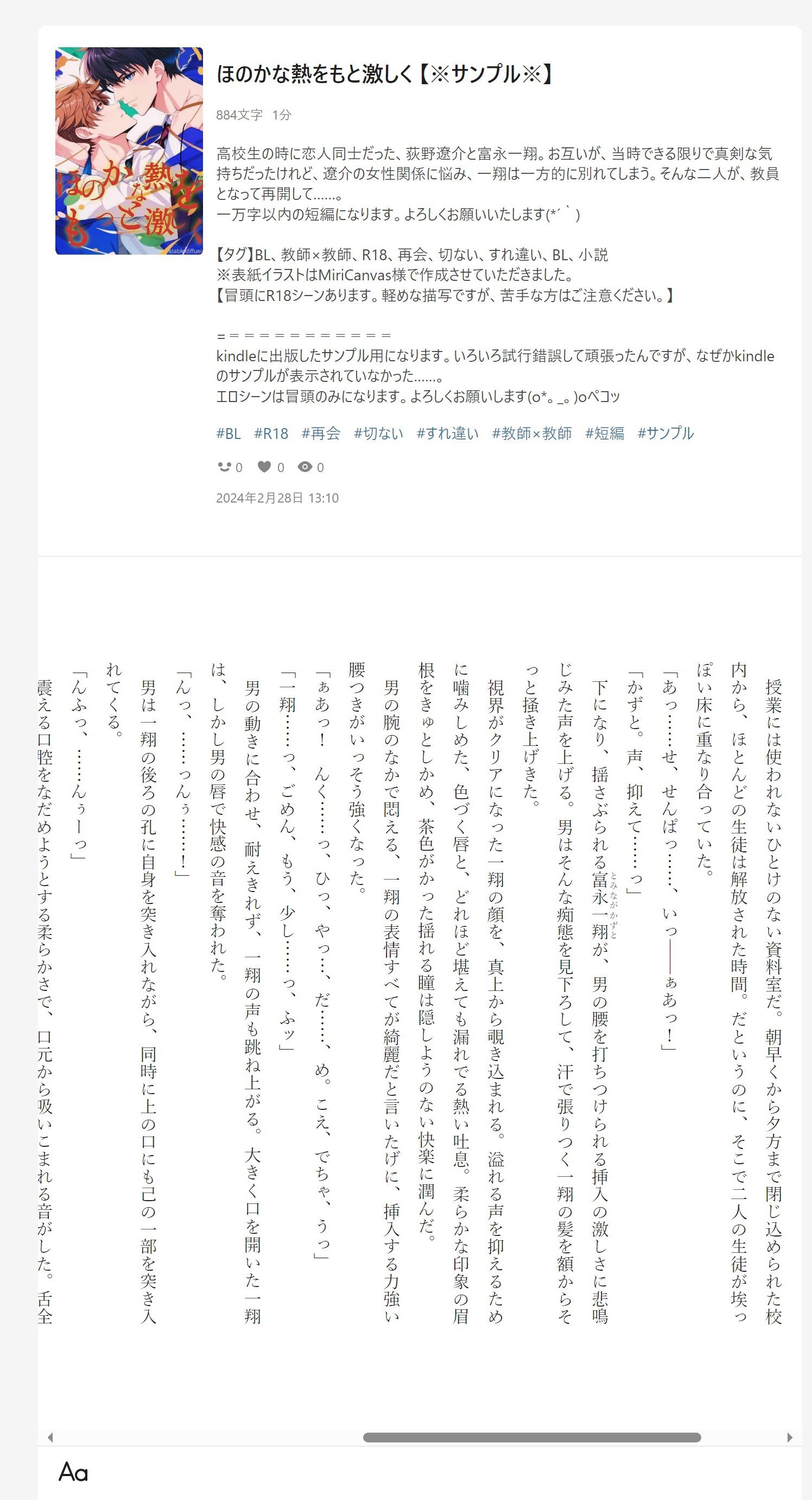 近況ですが、この度kindleに電子書籍を作ってみました。数年前に他サイト様に投稿したBL短編になります。