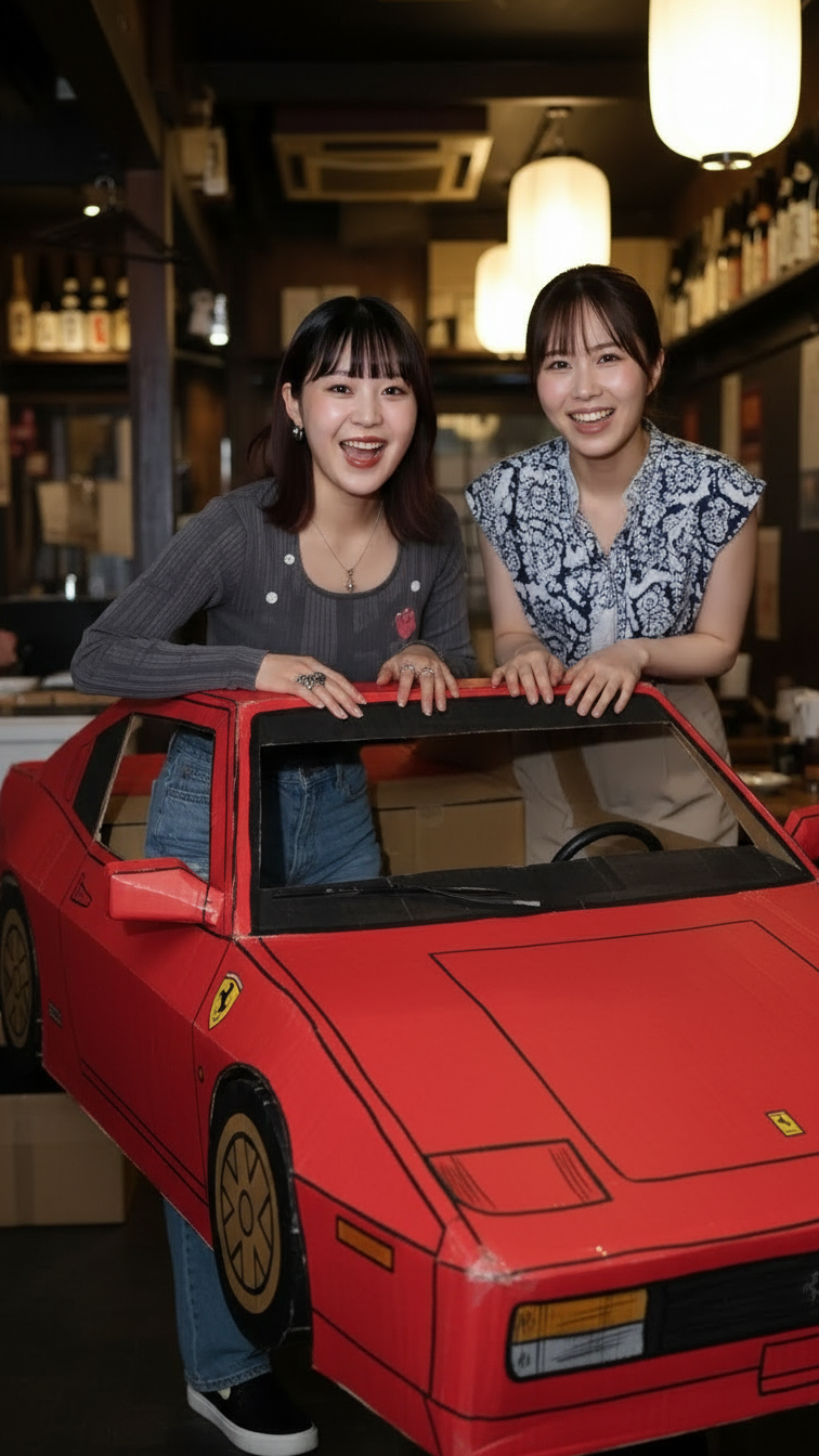 * **哀愁漂うチープさ:** 本物のフェラーリが持つ洗練、スピード、高級感といった全ての要素を、段ボールとマジックペンが全力で打ち消しにきます。この「頑張ってるけど、どうしようもなくチープ」な感じが、たまらない哀愁と笑いを誘います。