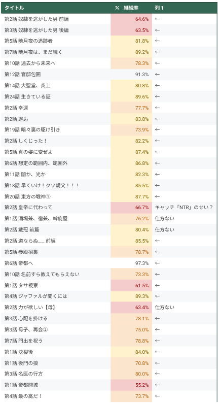 1. 第1話から第3話はやはり大事(PVが多いので、差も開きやすい)