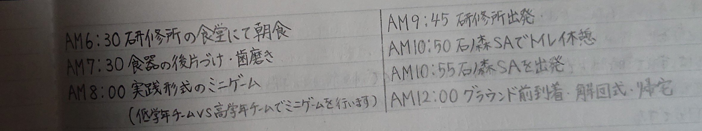 夏合宿の日程3日目、こちらが最後のスケジュールです❗