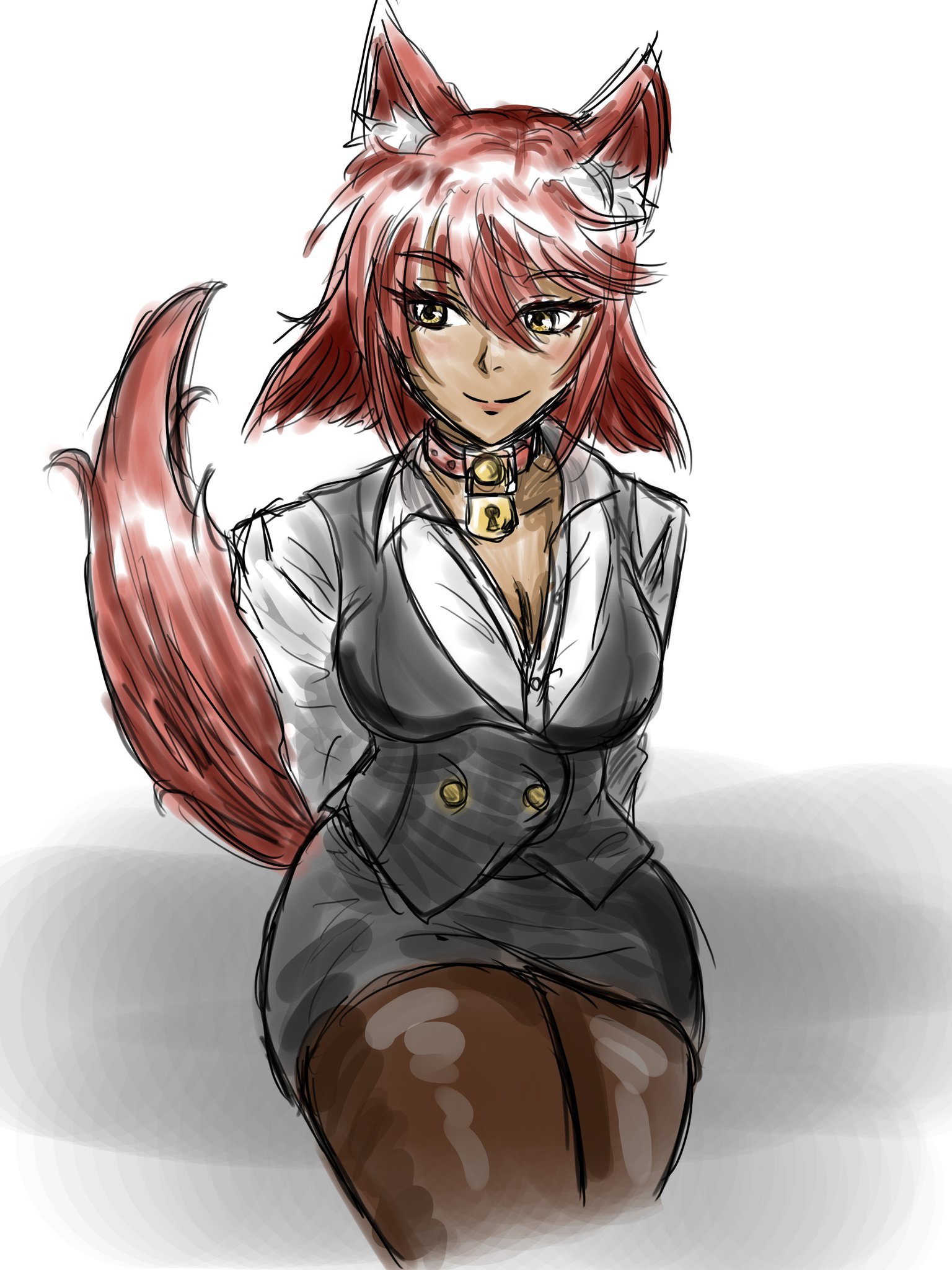 緋サソリ戦の時はスラックスだったが、今日はタイトスカートで下にパンストといった装い。尻尾はスカートの後ろに入った切れ目に入れてボタンとベルトで留めるタイプだ。