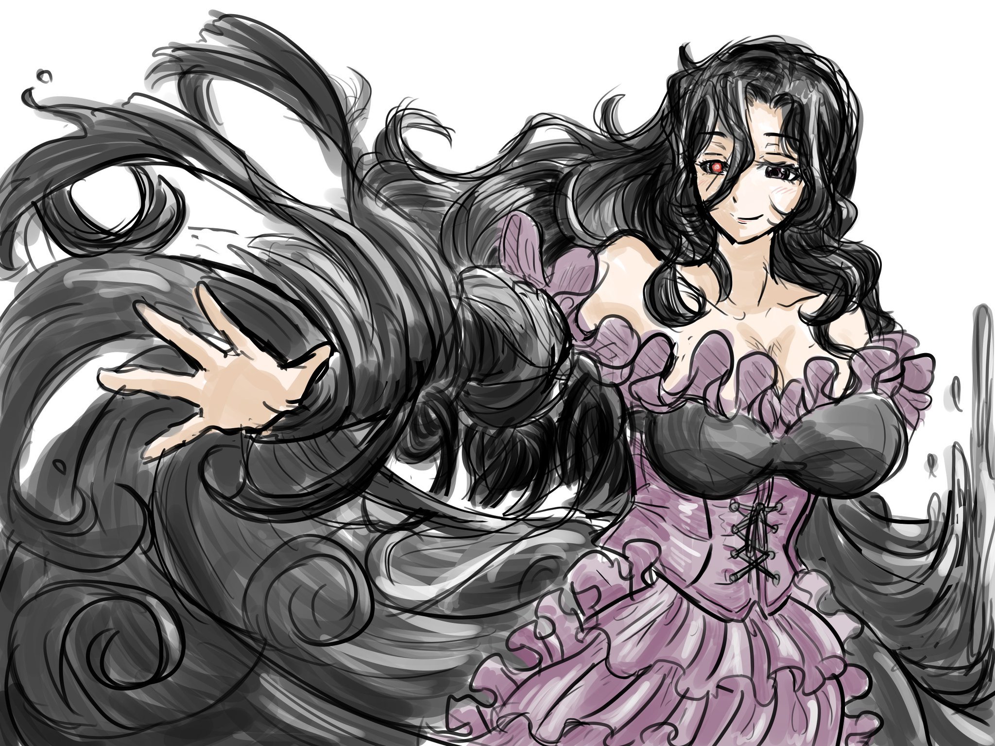 38話、挿絵。エミリー先生の液体金属製ドレス