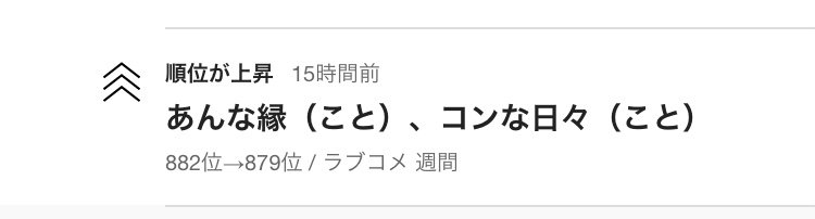 そして此処からはご報告!本日もまた、「コン」のランキングが上昇していました!本当に幸せです…皆様には感謝が止まりません。゚(゚´ω`゚)゚。
