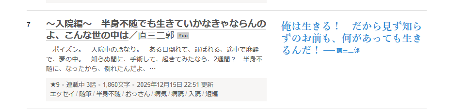 後、終わってないから長編らしいけど、まだ一万文字もないんだけど、長編かぁ。