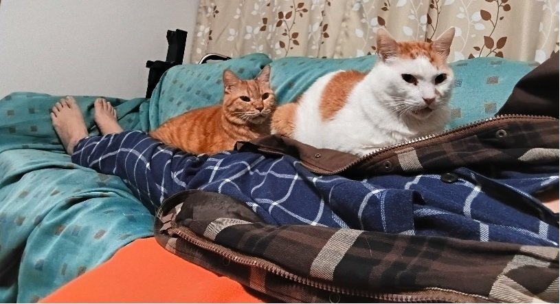画像は嫁さんの実家で要石に封じられた……もといそこの猫に何故か妙に懐かれた姿です。