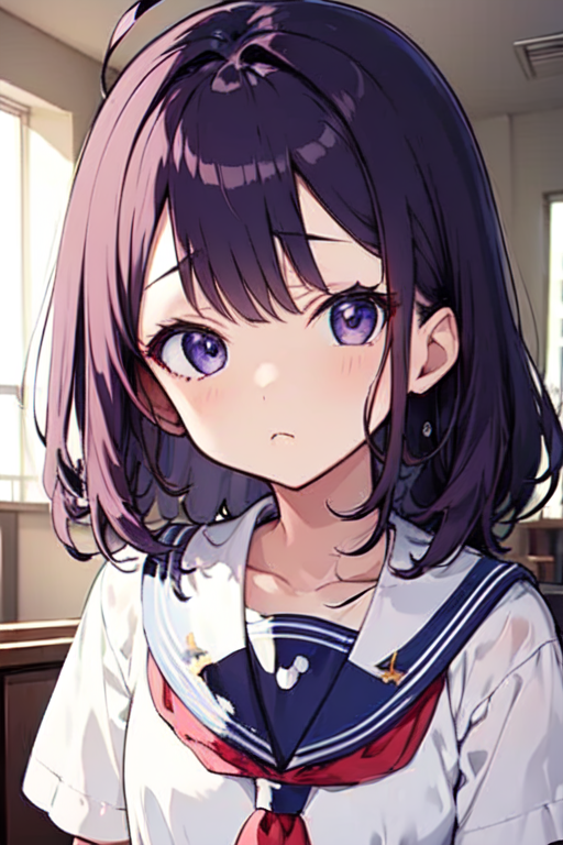 画像はイメージと髪型が違いますが、リボンを外したバージョンとして用意しました。(ハーフアップと入力してもAIがこういう髪型ばかり作っちゃうので妥協です)