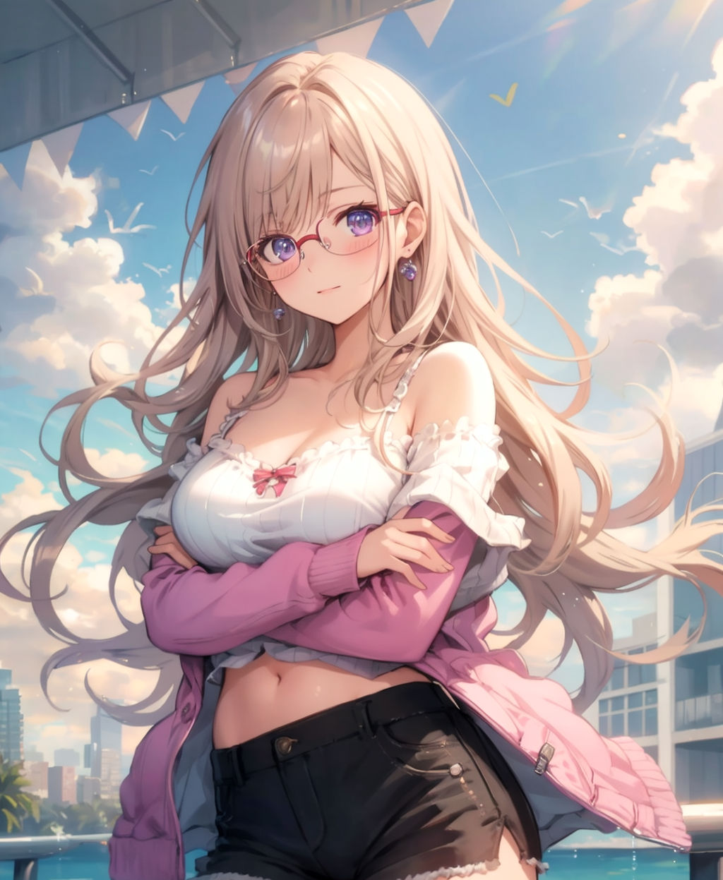 金髪ロング ウェーブ髪 黒ぶちメガネ 赤紫の瞳 グラビアアイドル並みのスタイル