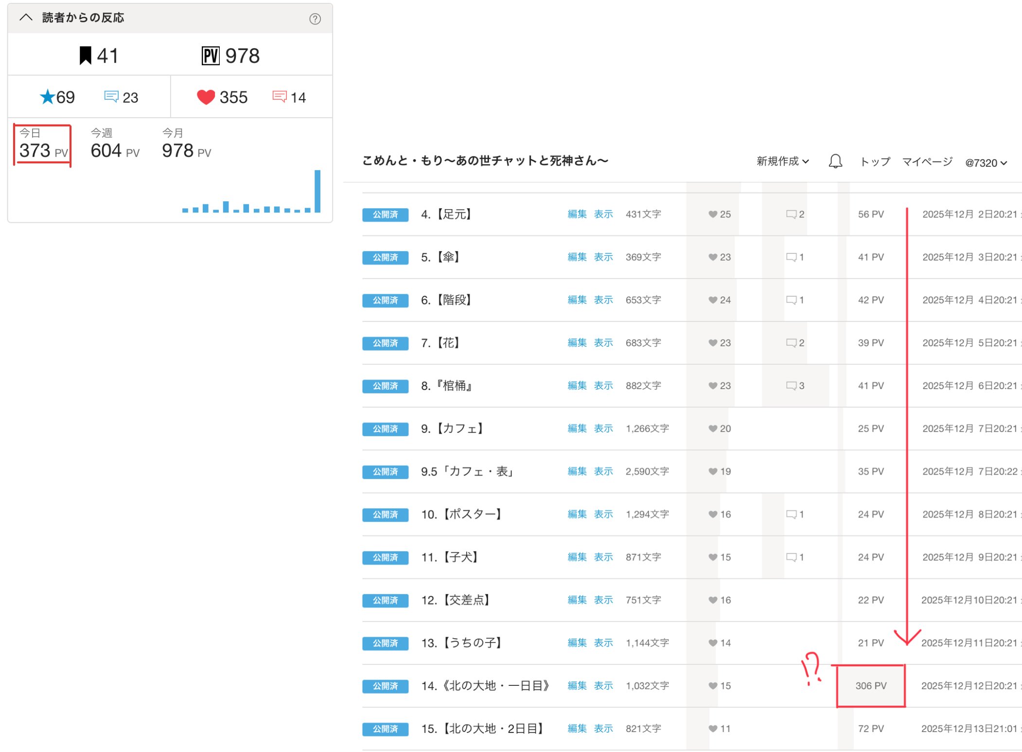 書く友さんから言われて気づきましたが、もしかすると、死神さん達が読みに来たんですかね……?