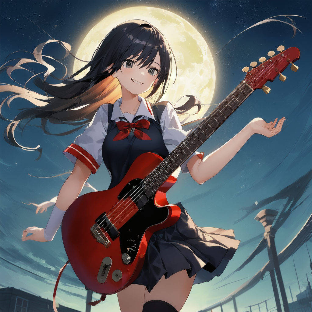 表情の調整がバチクソ難しすぎる。ギターもペグ8つに対して弦6本とかw、小物の調整も難しい。もっと言ったら、制服のイメージこんなんちゃうねんw。ま、いっか。