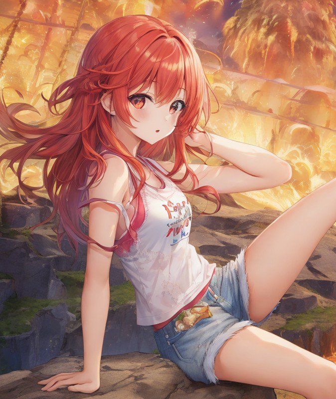 タイトルに書いた通り友人のワニからうちの小説に出てくる炎龍茜さんのAI絵が贈り物として届いたのでここに置いておきます。