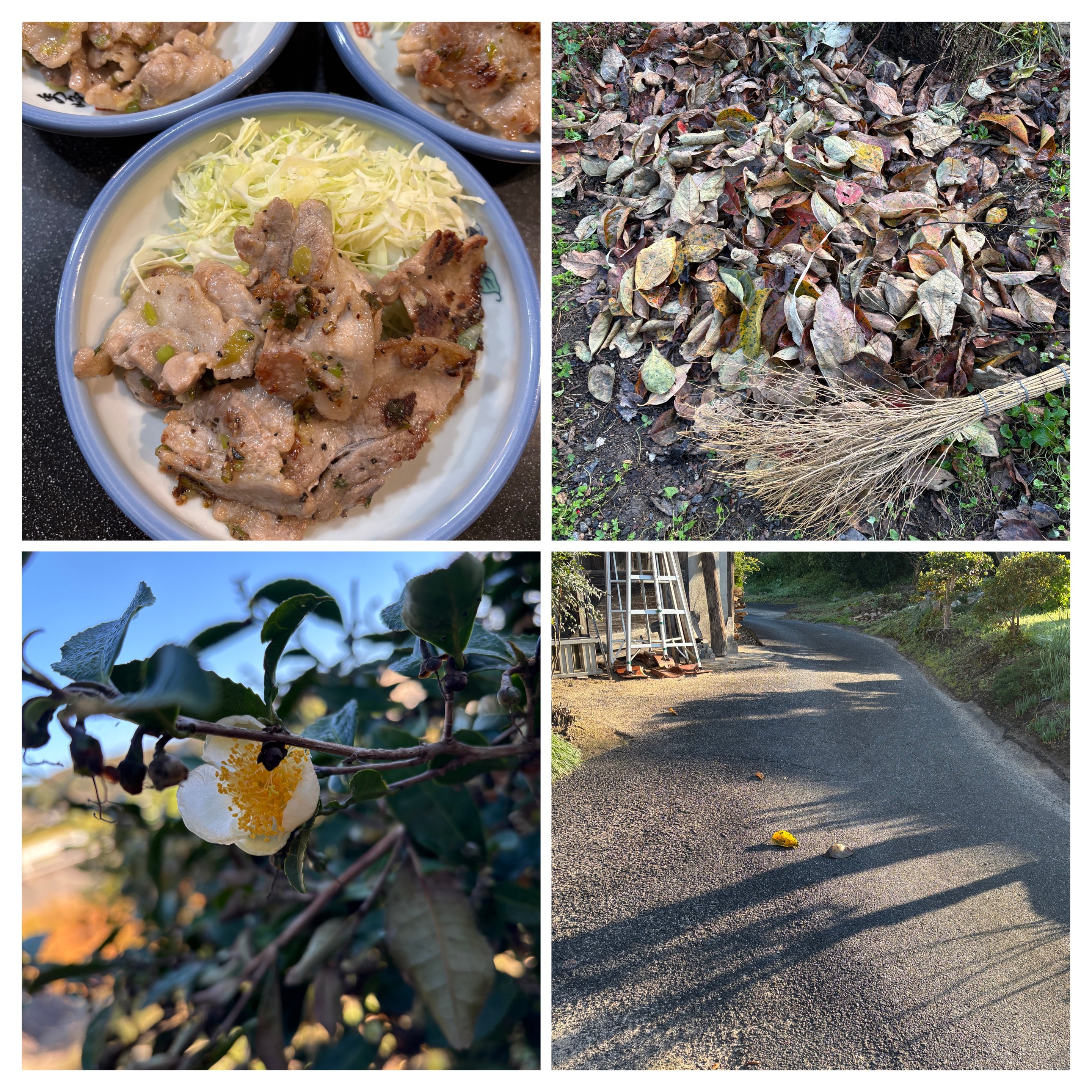 右側は、柿の葉の落ち葉を掃き寄せたところ。