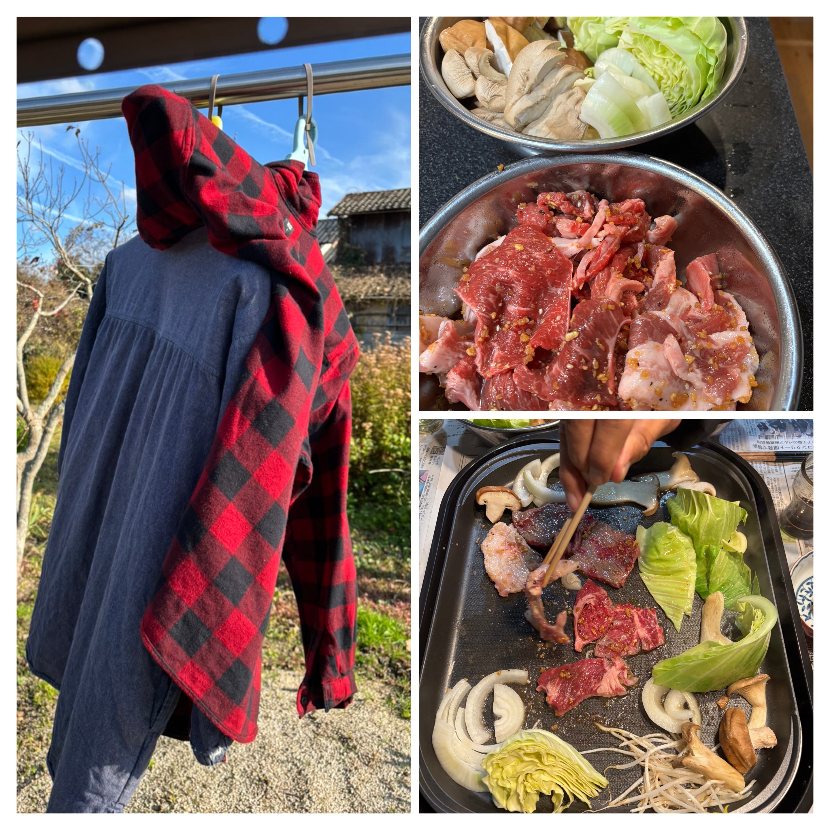 妻のジャンパー型エプロンにからむ夫のシャツです。