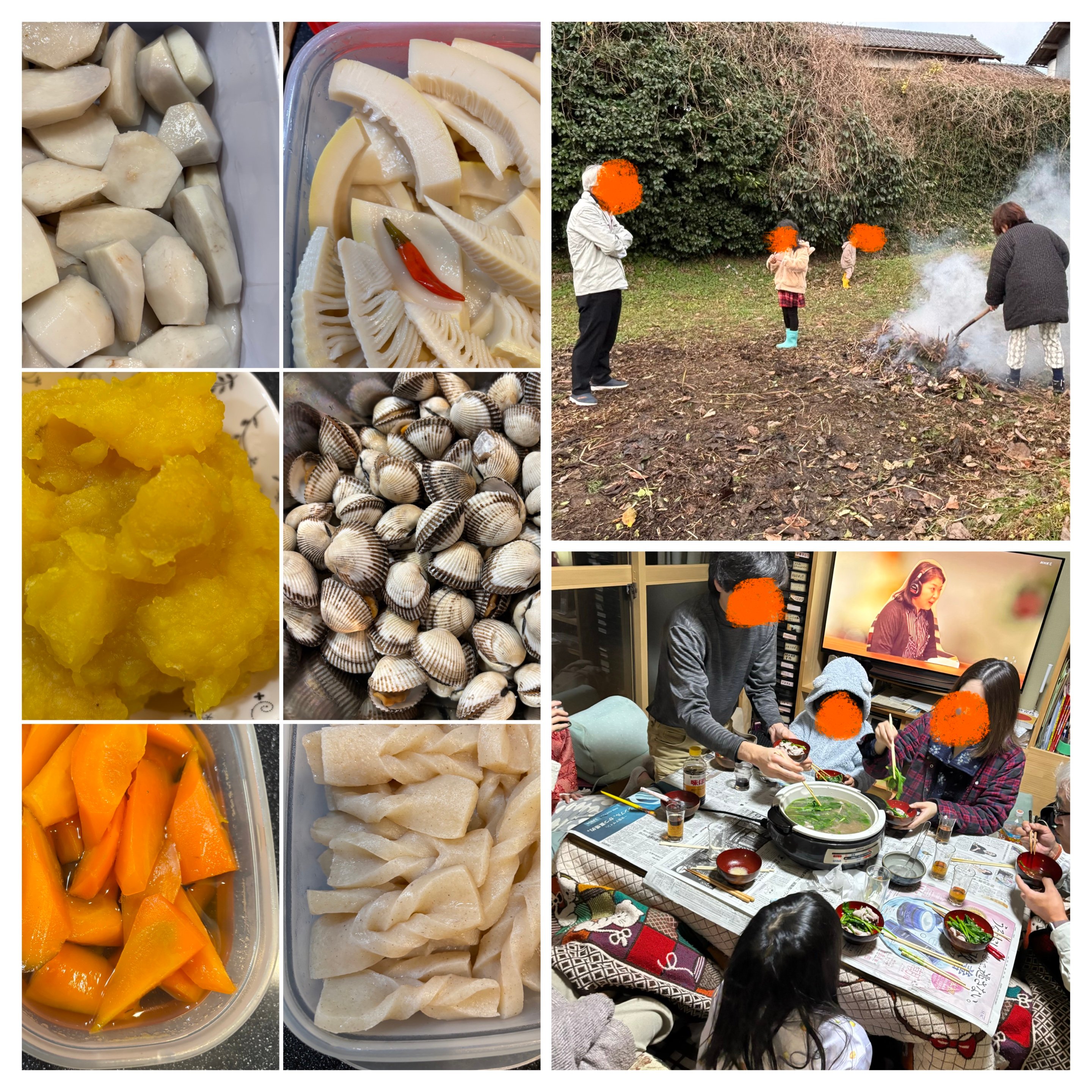 右は山々モリモリだった剪定の枝を燃やしたところ。