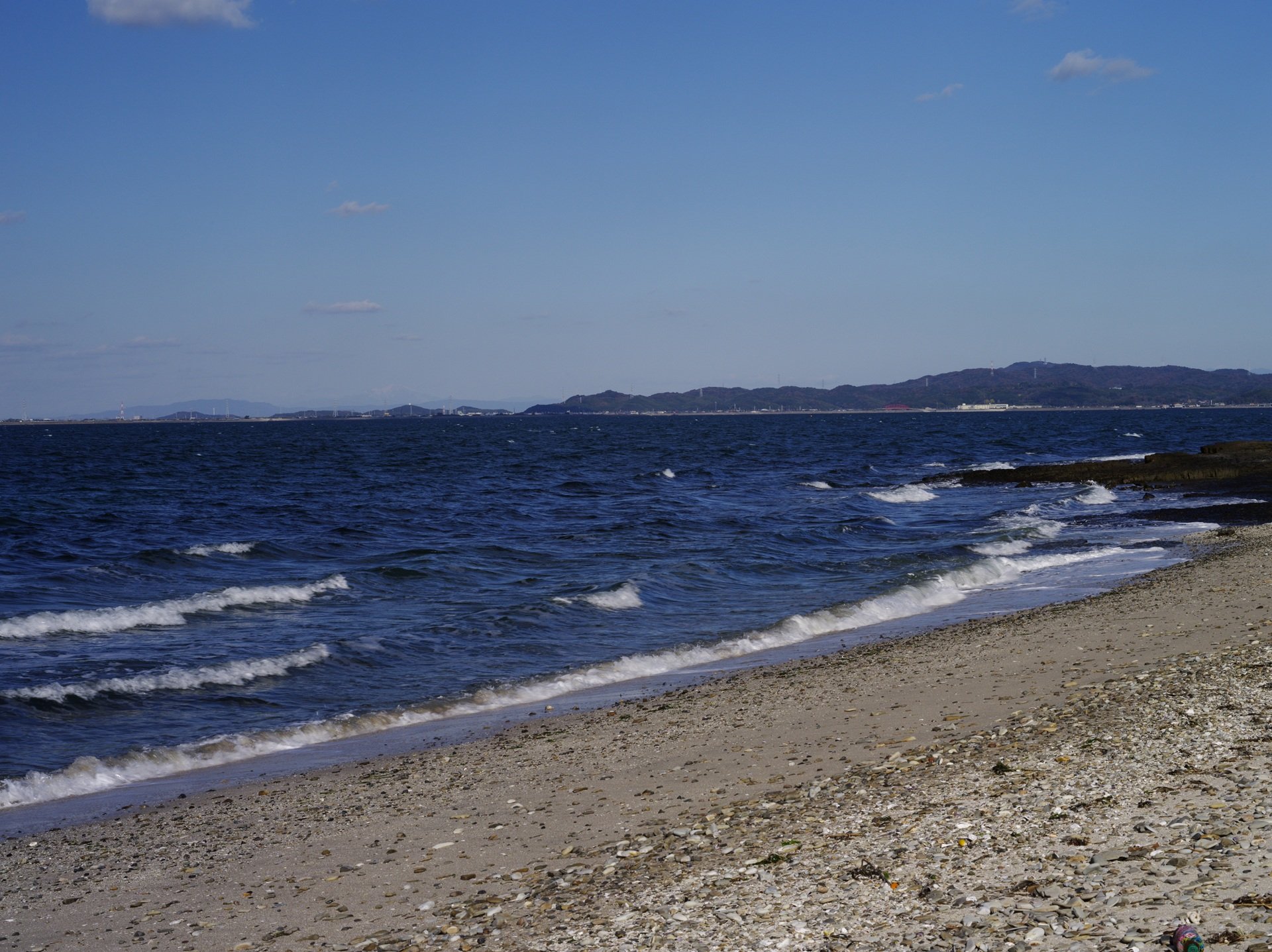 佐久島の小浜海岸で反対側を向けば、海岸の向こうには、三河やその遥か遠くの方には雪を冠した山、もしかして御岳山?もとても小さくですがハッキリ観えましたよ。