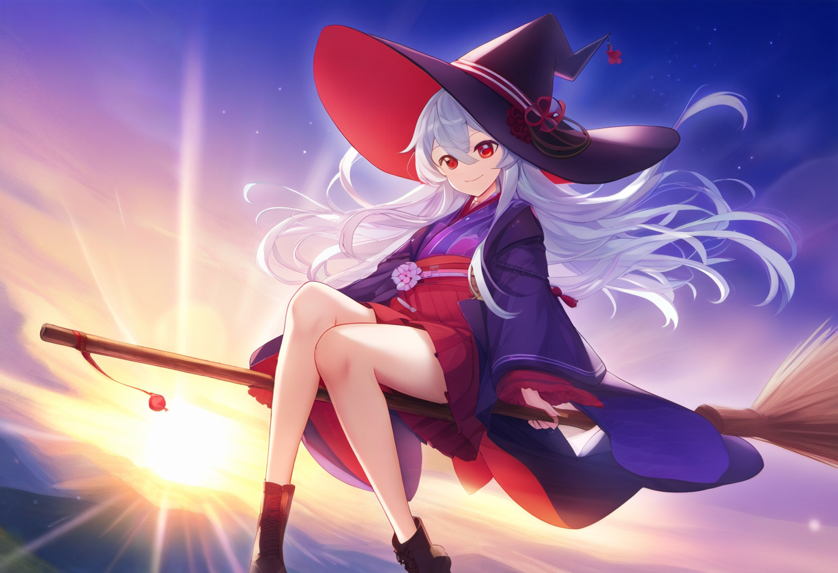 魔女っ子+和服、似合ってますね👍 初日の出もめでたいです。