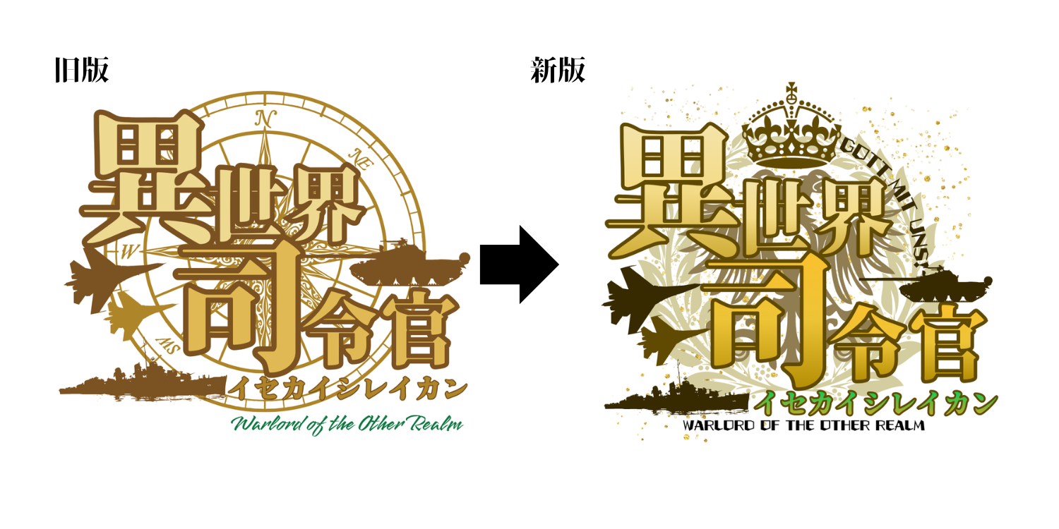 初期案の背景が時計で転生を表し、変更案は、帝国が大国になった結果を現した王冠になっている訳ですね。
