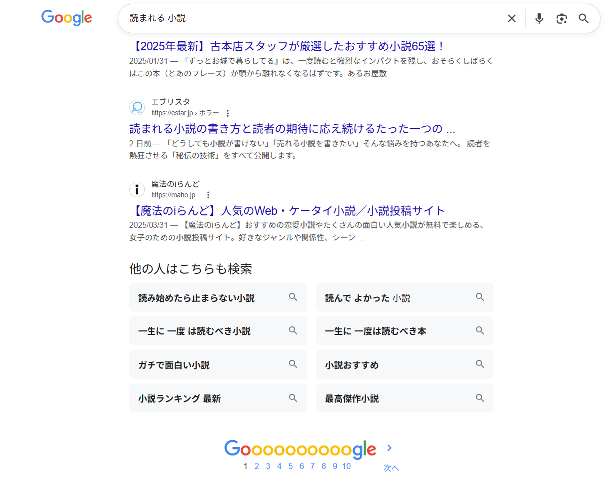 前回、近況ノートで名案を募ったところ、「読まれる 小説」でも一ページ目にいると教えていただきました。ただ、そこにあるのはエブリスタ版です。