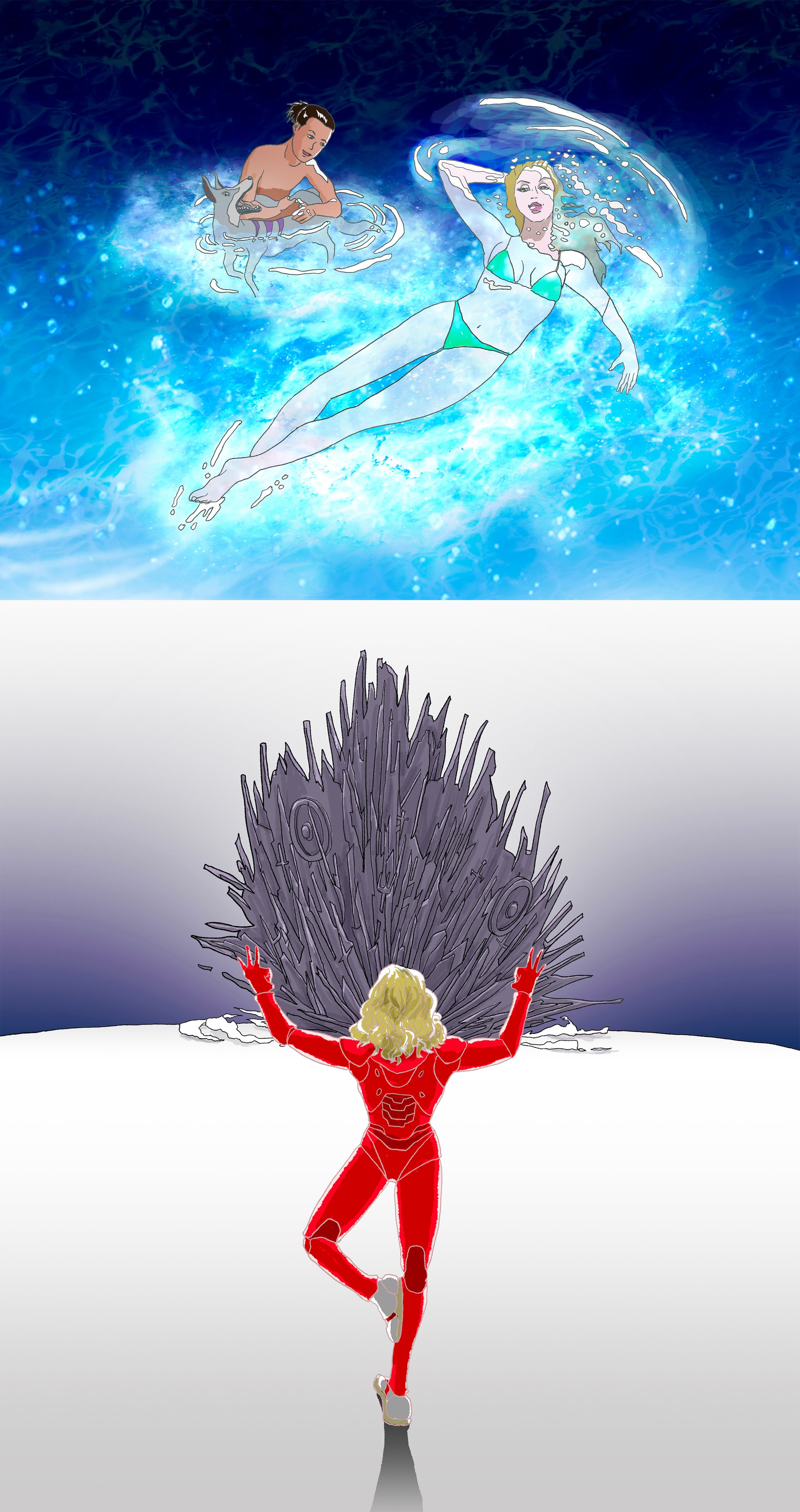 「行くよ!」ハニは海に飛び込んだ。バシャ!バシャ!ハニの周りが青く光った。