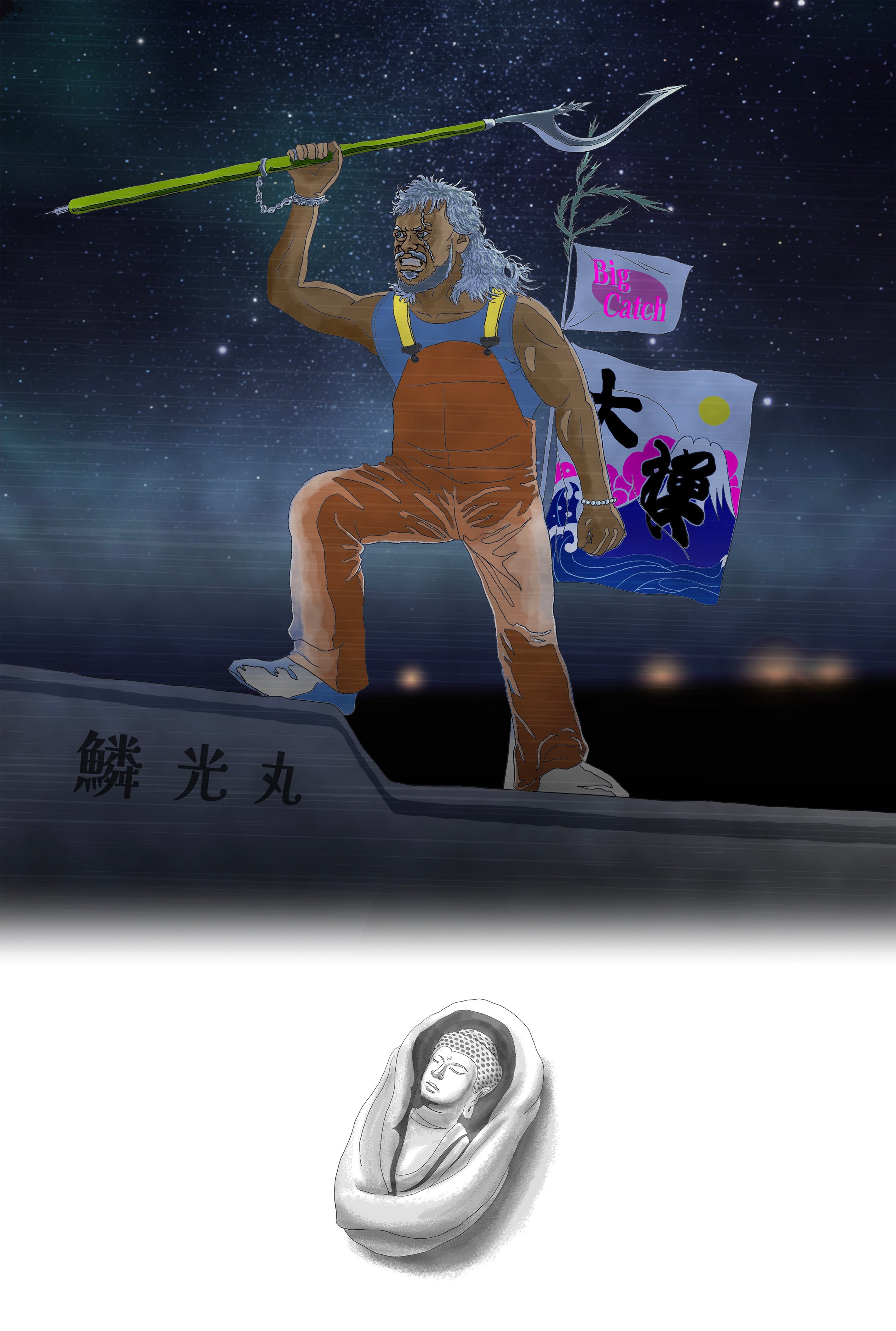 真夜中の穏やかな海へ鱗光丸は出港した。しばらくして速度が落ち、やがて止まった。