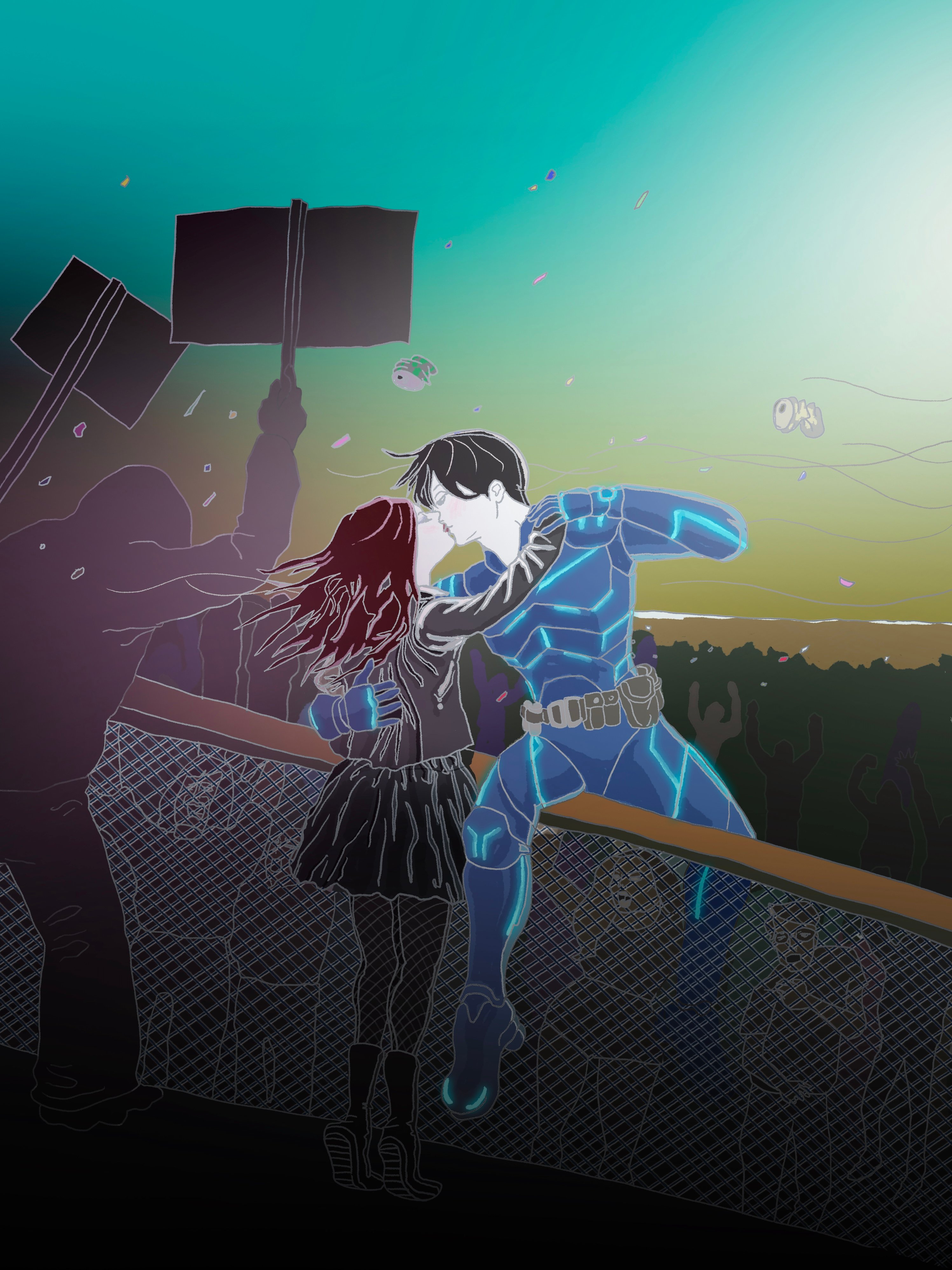 「デモ、ヤバイね。」クラウンが興奮気味に声をかけると、ブラストは気のない返事をした。「あ、うん。」