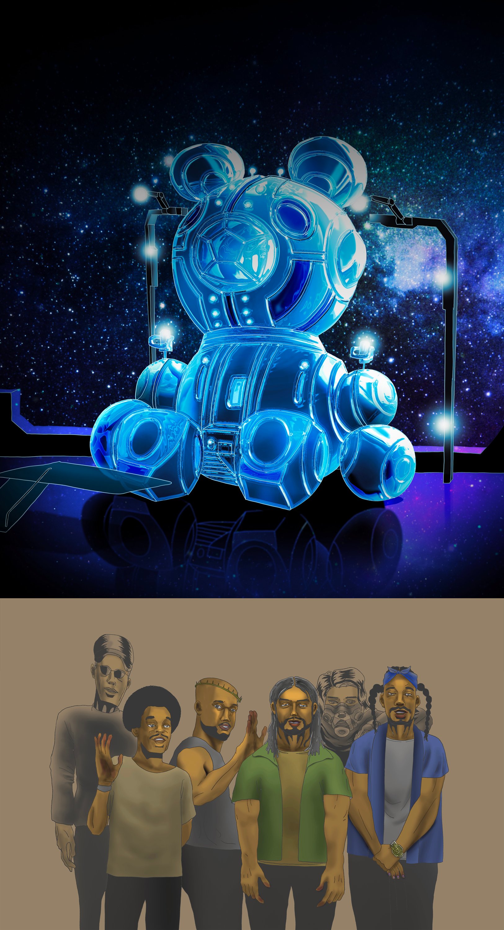 「あれだよ。」ヴァルは自分達の宇宙船を指差した。たくさんの宇宙船とドッキングしてできたテディベアの形をしていた。