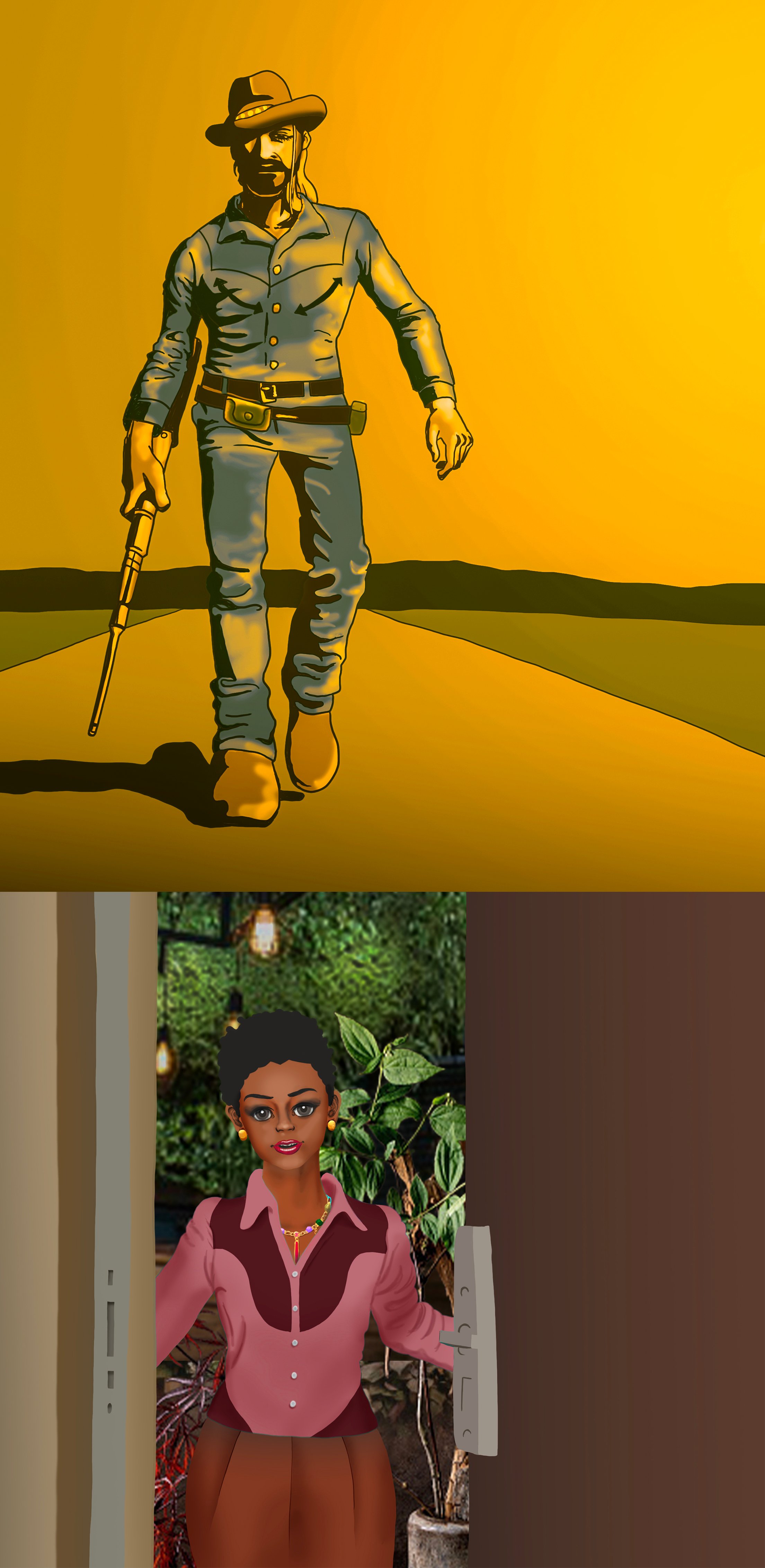 そこにはスレンダーな黒人女性が、小さなアフロヘアーにウエスタンシャツ、赤茶色のサルエルパンツ姿で、驚き立っていた。