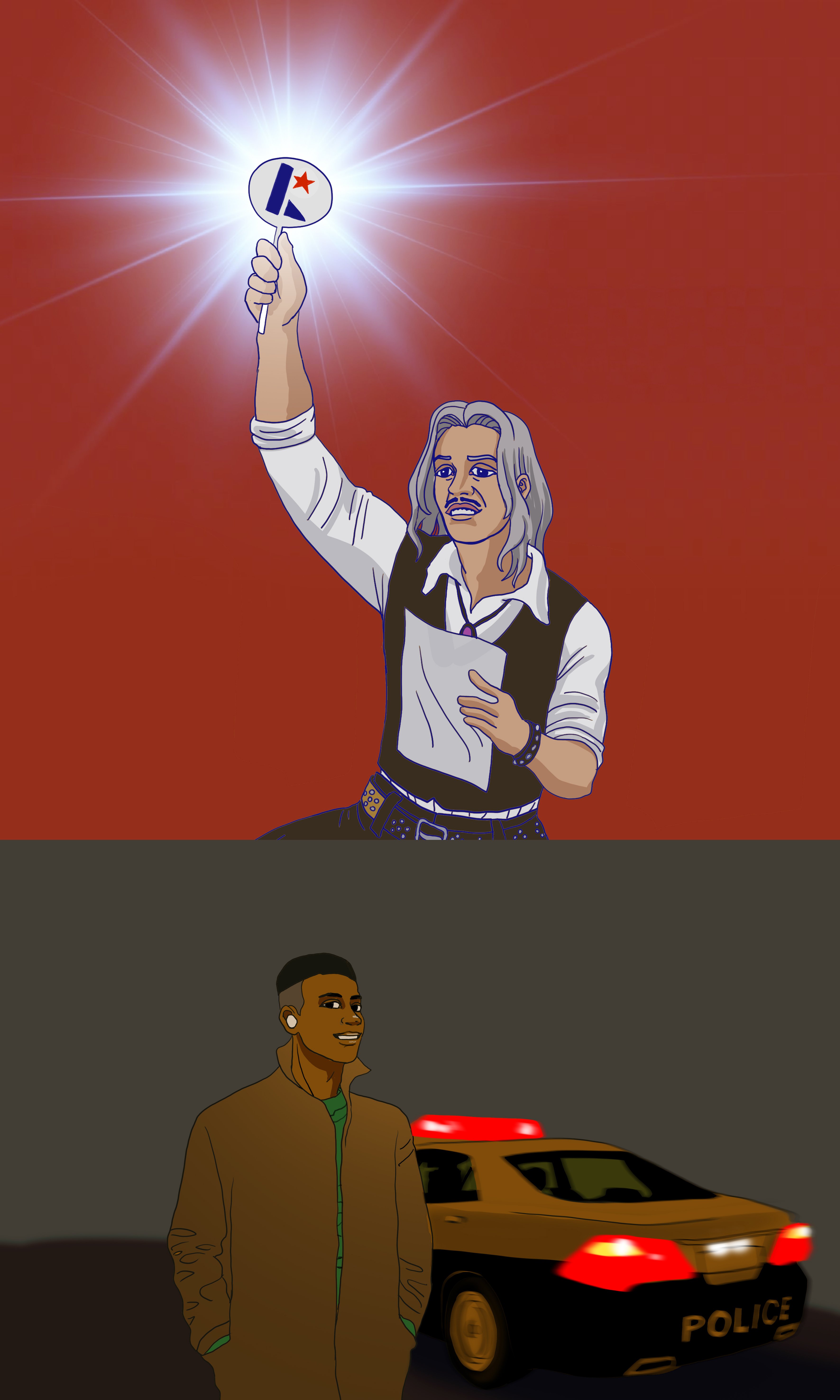 「いいね〜。ボクのオススメの店があるから、そこ行こう。」ヴァルが話しながら歩いていると、目の前をパトカー数台が高級ホテルに向かって行った。