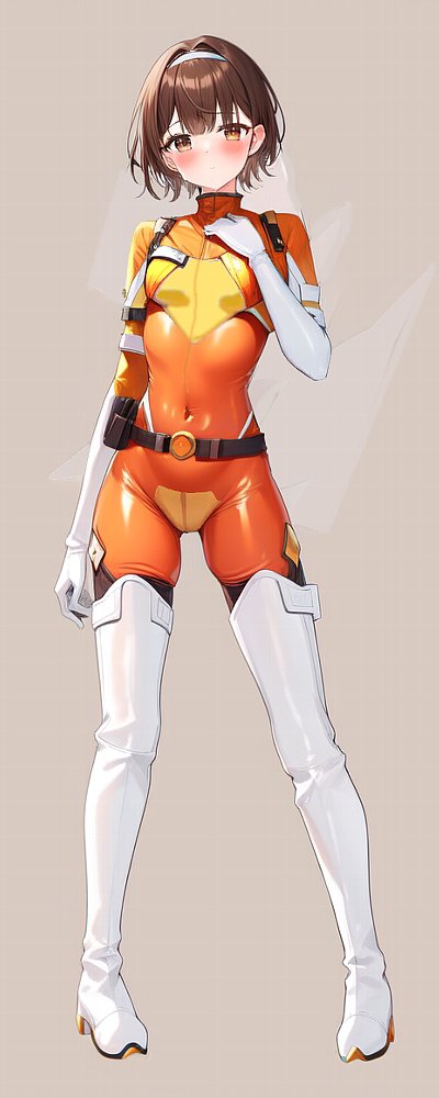※5/29追記 「アンナ・クレー」のぴっちりスーツ姿のイメージ絵をAIソフトで作成しました。細部はともかく、全体像は↓こんな感じだと思ってください。