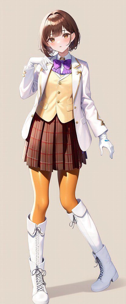 ご覧の通り、一見現代日本でも見かけそうなブレザー系女子制服ですが、手袋とブーツそして何よりオレンジ色のタイツ(に見える魔導制服)が特徴ですね。