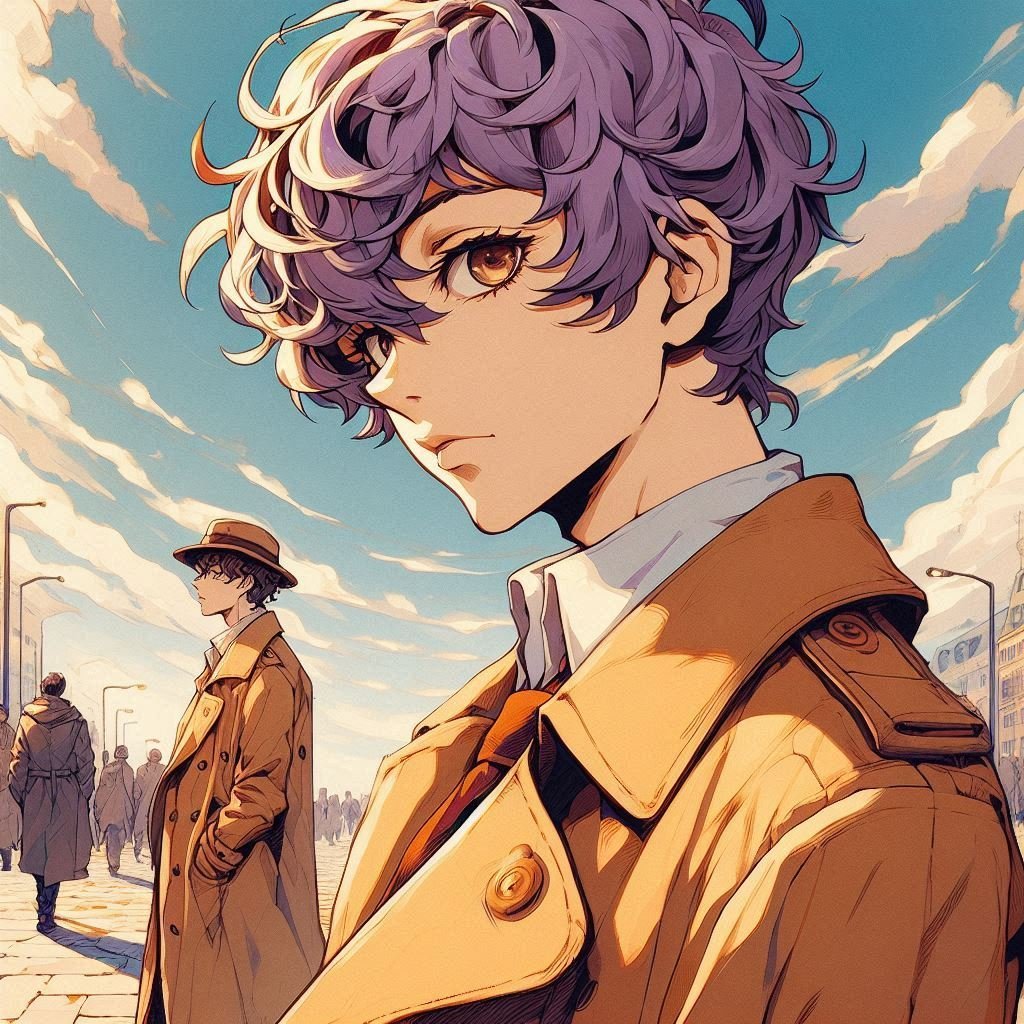 作中主体。みな同じ方へ向かっている中、振り返ってしまったのは、世の在り方に疑問を持ったからでしょうか……
