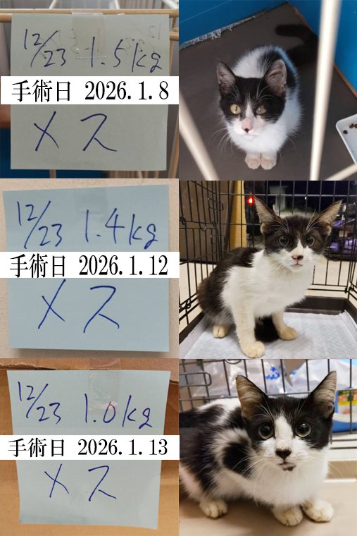 東京からは「前の子たちが全然貰われなくてモーモー牧場化してるから、当分白黒猫は引き受けられない」と言われております。
