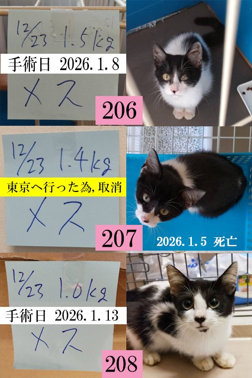 生後6ヶ月以上の成猫との診断を受けた猫たち。
