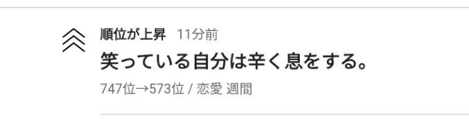 今週の恋愛ジャンルランキングで573位に上がりました!!