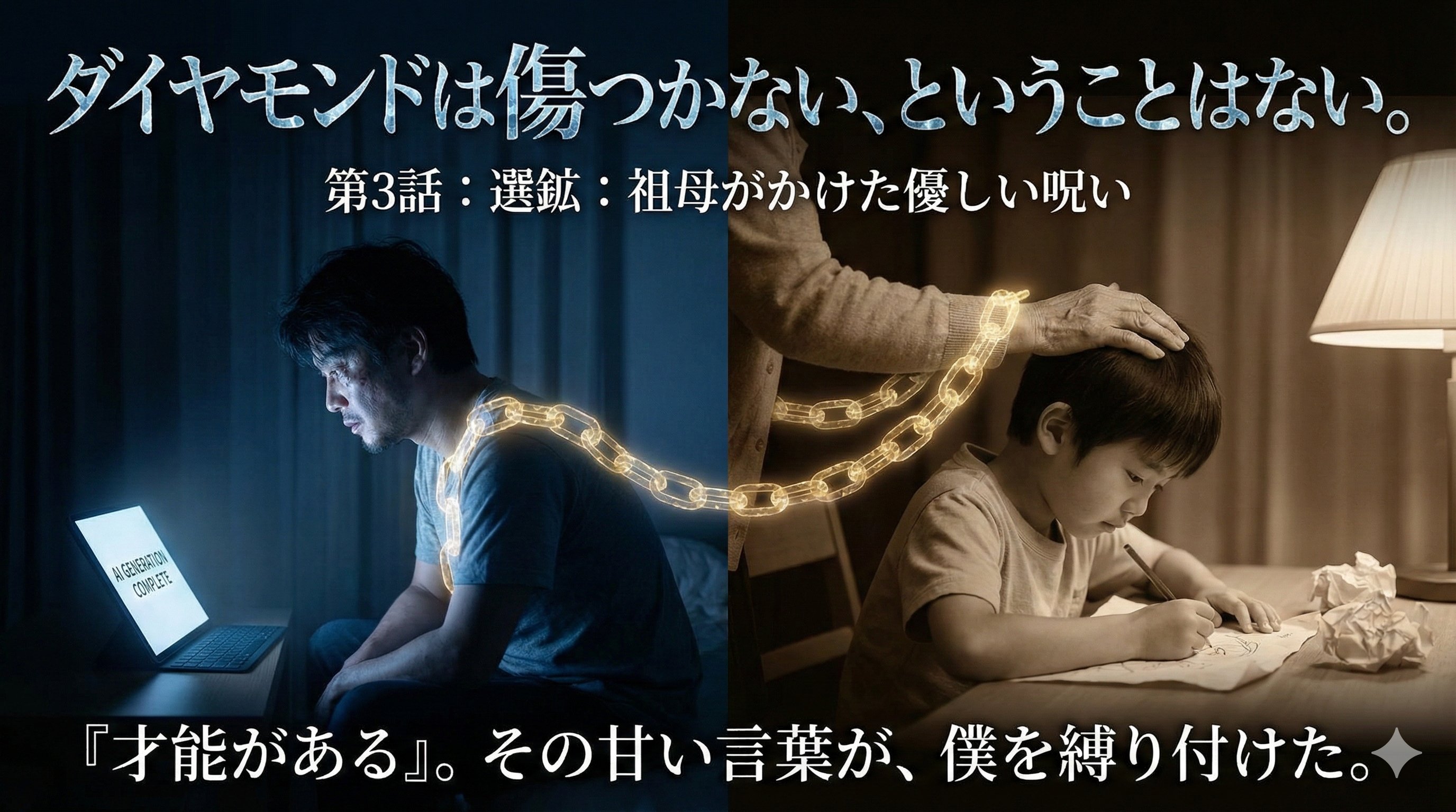 その甘い言葉は、劣等感にまみれた幼心に染み込み、やがて人生を狂わせる「優しい呪い」となりました。 自分は特別だから、兄のように汗水垂らして努力する必要はない。いつか誰かがこの才能を見つけてくれる――。