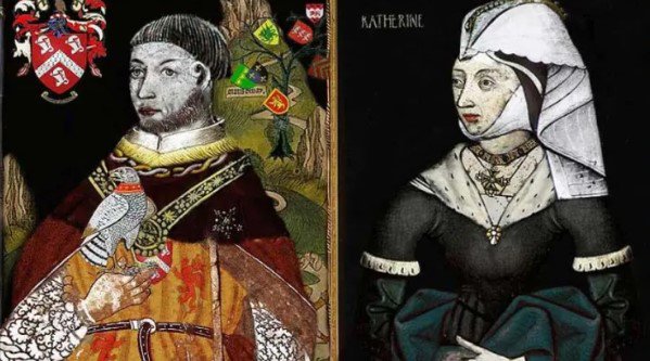 この肖像画はヘンリー7世の祖父母にあたるオーウェン・チューダーとヘンリー5世の寡婦・王妃キャサリンで、2人は周りから夫婦と認められていたのでした。