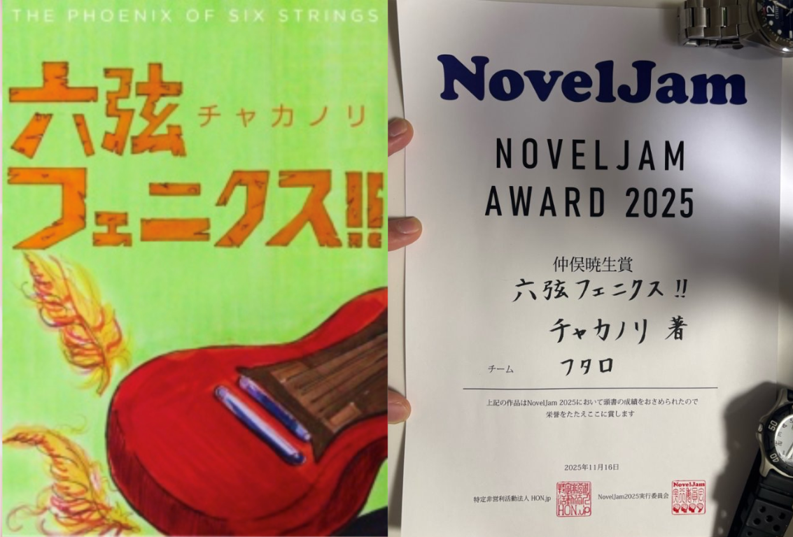 審査員賞を受賞した拙著「六弦フェニクス!!」の試し読みはこちらから!