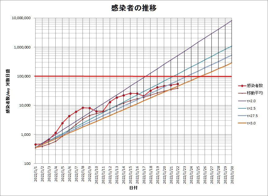 感染者数/day (縦軸) は常用対数目盛りになっている。
