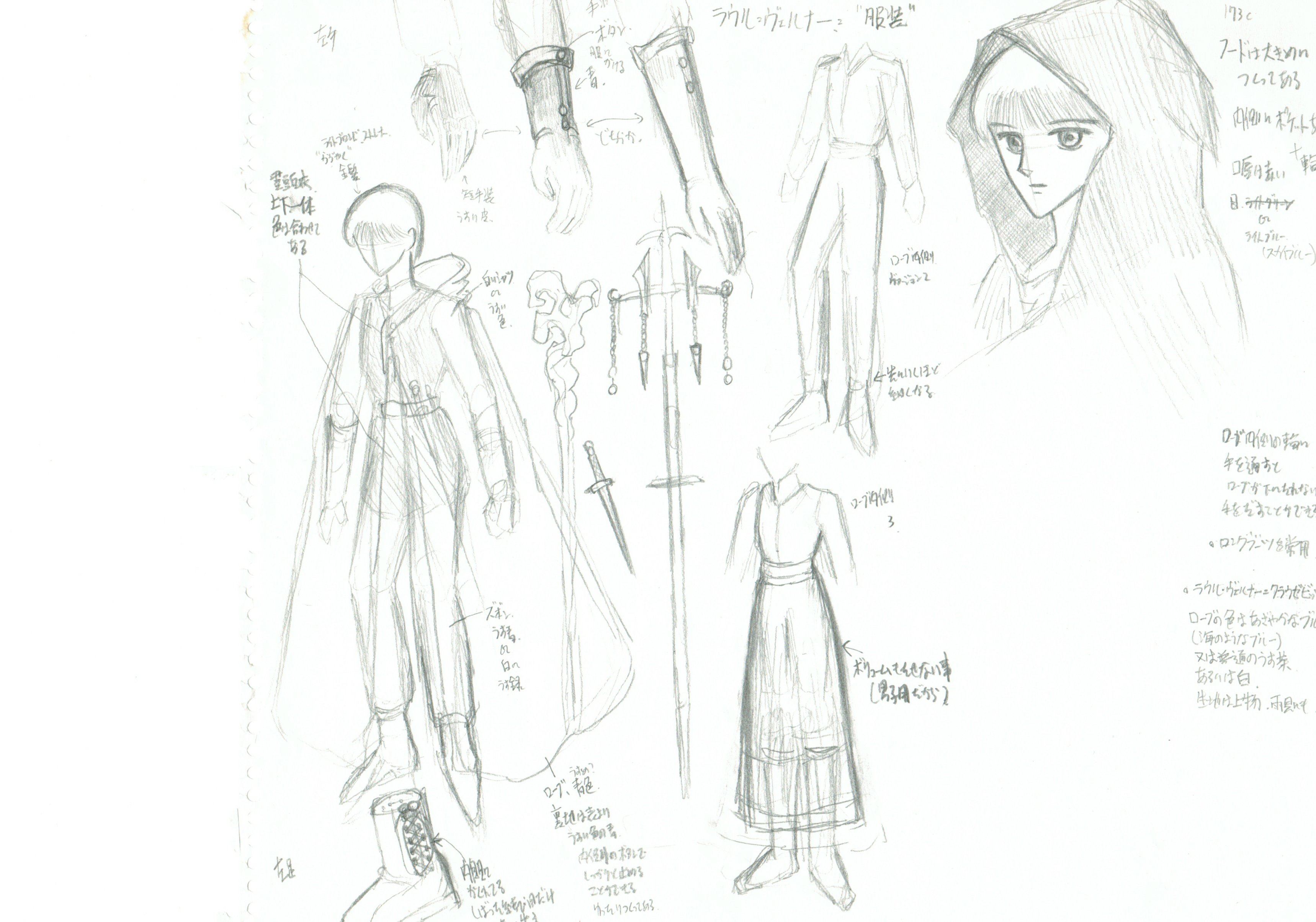 広刃剣を持って戦うという設定が有るのですが、この絵を描いた時はそこまで考えてなかった為、剣が無いです。