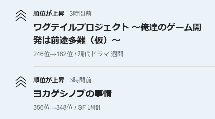 さて目が覚めてスマホの通知を確認したところ(本来は仕事関連の通知が無いか調べるため)、本日も週間順位の通知が来ており確認したしました。