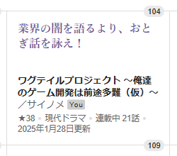 そして余談ですがカクヨムコンの週間ランキングを確認したところ、ワグプロは「104位」でした!!
