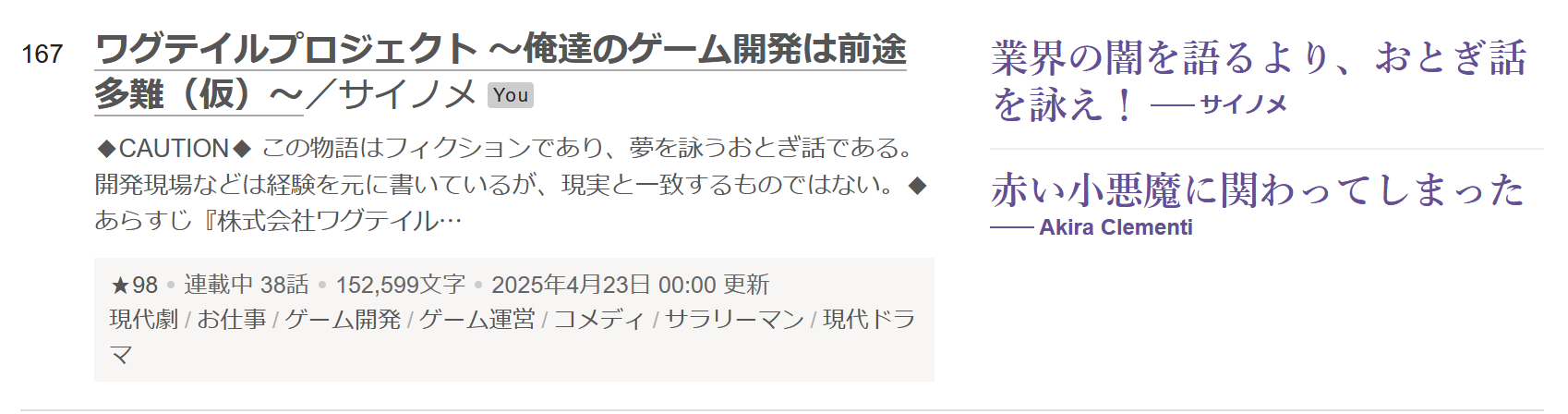 ワグプロが現代ドラマのランキングにて167位となりました。