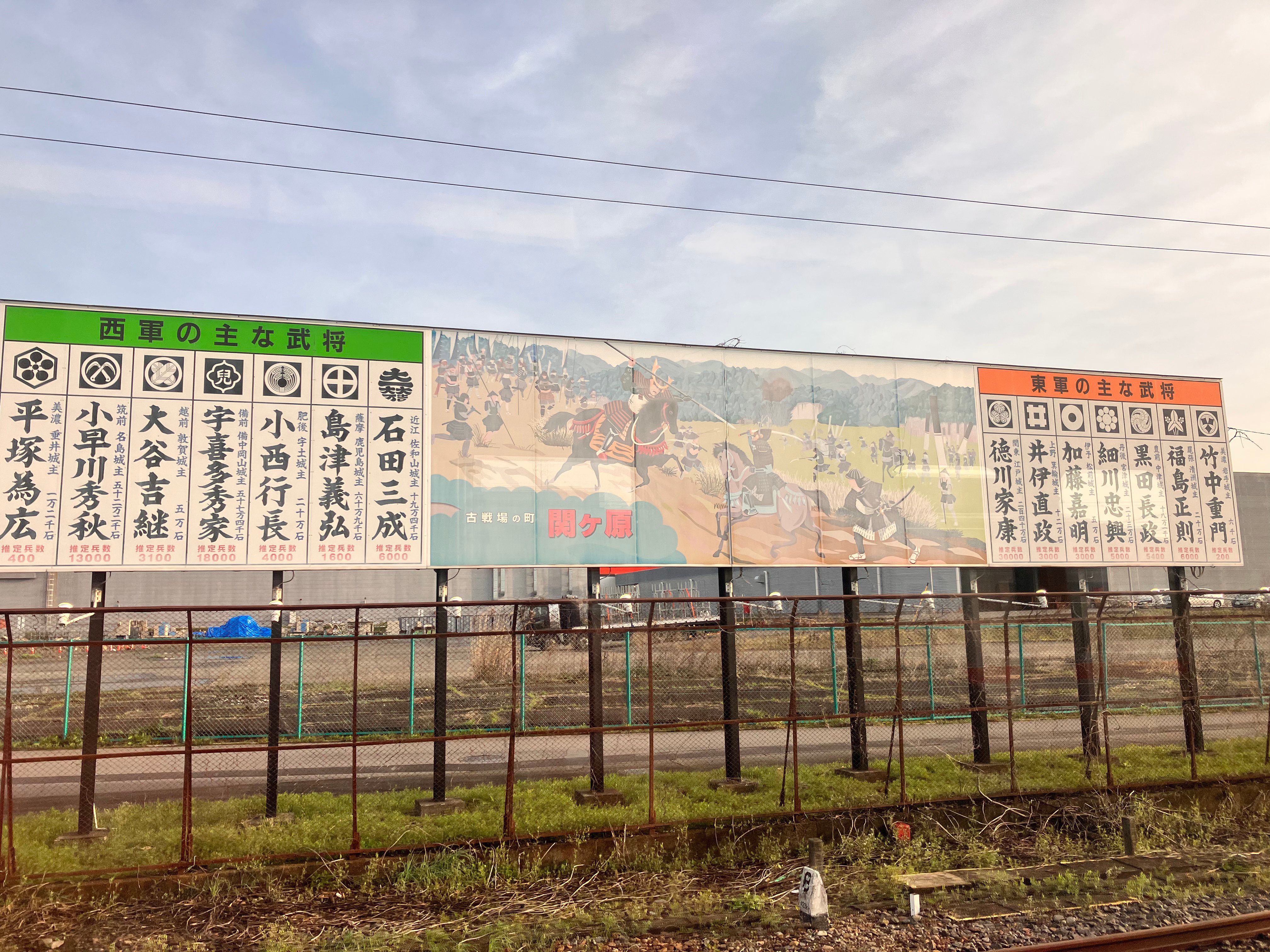 関ヶ原駅名物のサクッと歴史を学べる看板。