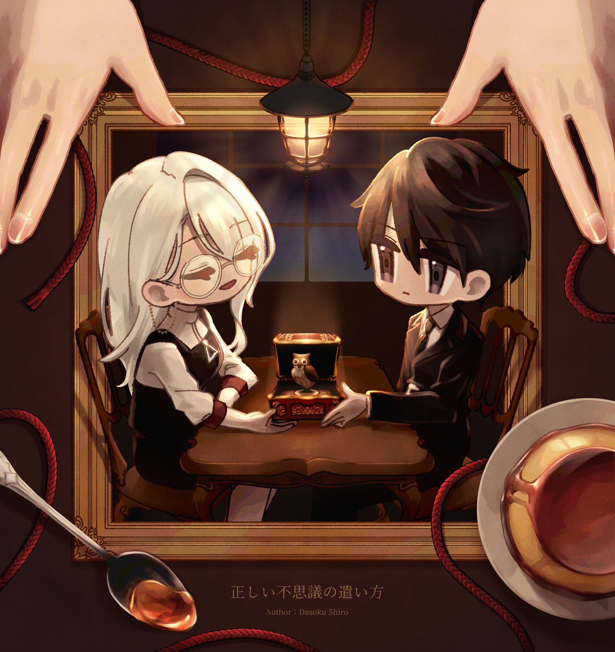 2人とも、すっごく可愛い……。それに手前のプリン、美味しそう食べたい。お腹すいてきた。絵を眺めてにやにやしながら、プリン食べてこよう。