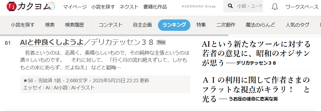 AIをテーマに取り上げた作品もカクヨムで多くみられ、面白く読ませていただいております。