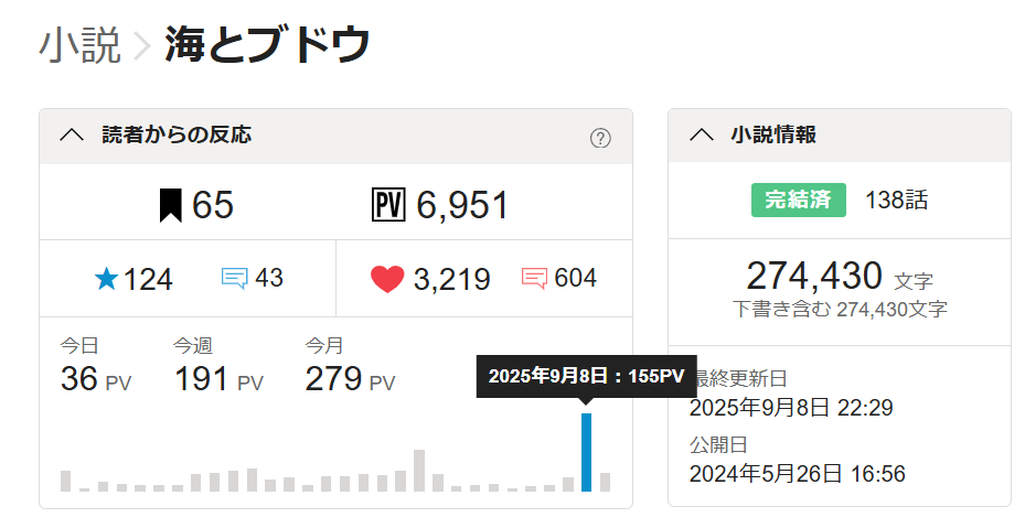さもなければ、何かをきっかけに、150人ほどの人が1話だけビュワーで開いて、ハートも残さず離脱して行った、とかだと悲しいですなあぁww