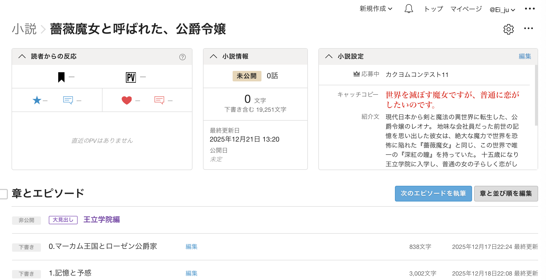 今の私が書いた薔薇魔女、とにかく王立学院編は書こうと決めておりまして。