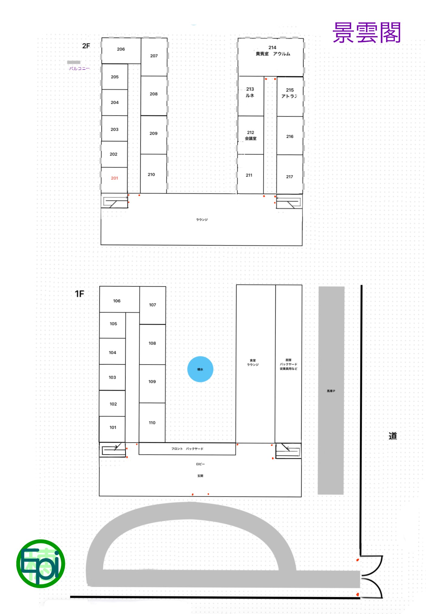 十四章「翡翠の残響」で大部分を過ごすことになる、テルメの最高級宿の「景雲閣」の間取り図略図です。