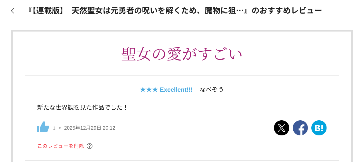 聖女の愛がすごい、新たな世界観を見たと完結に評価してくださいました。