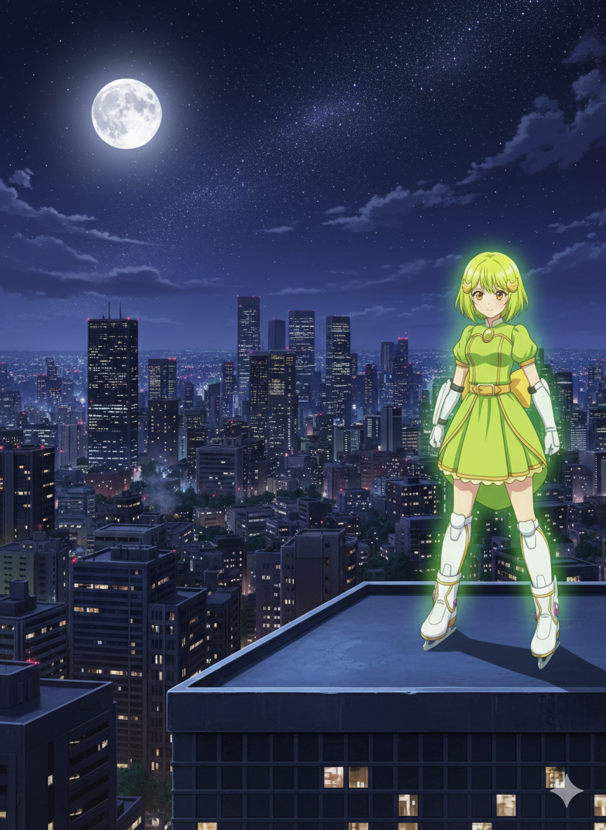 真夜中の街、屋上にたたずむジェミニ・パラックス。