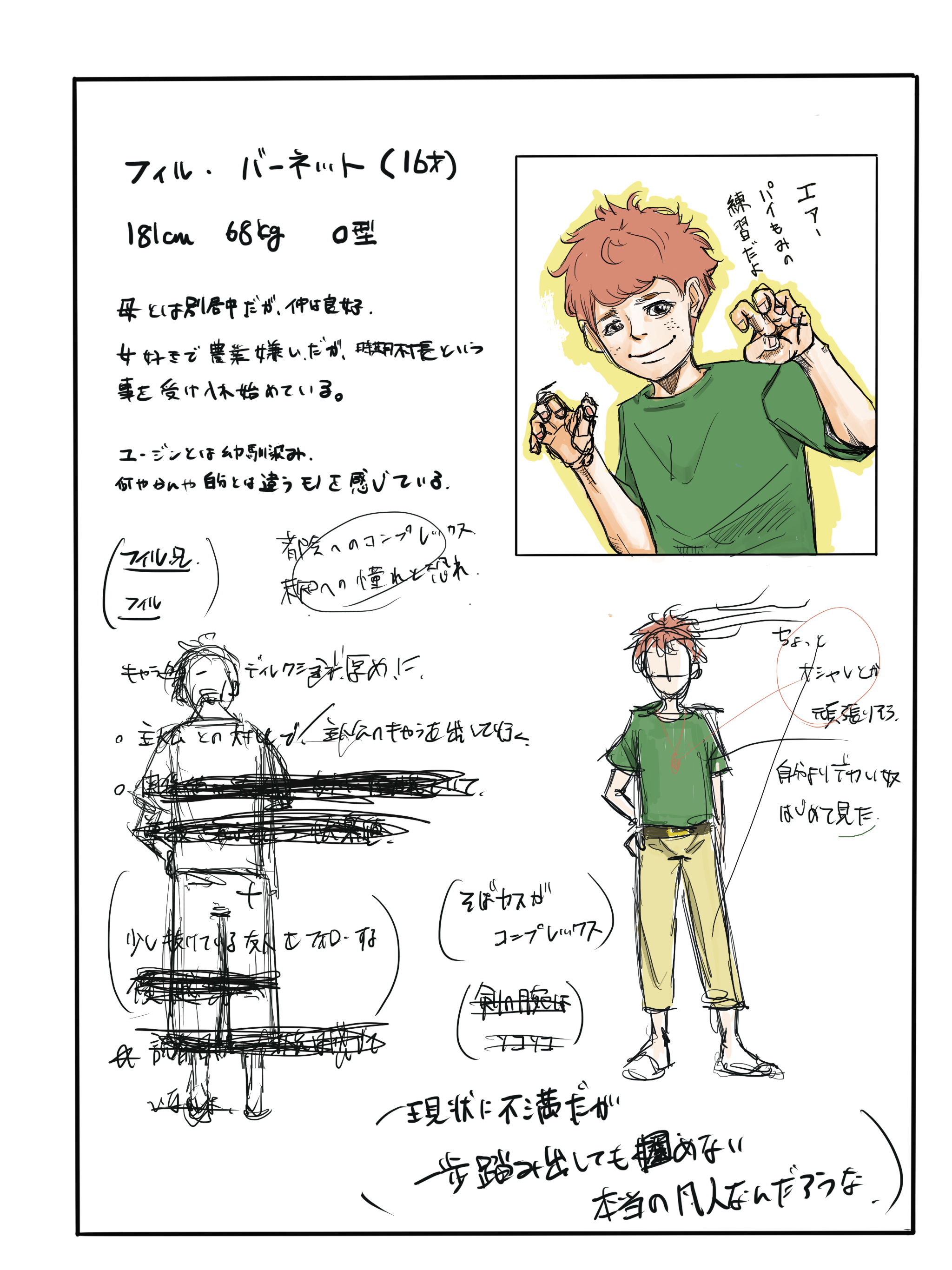 設定時のラフとちょっとした裏話(幼馴染の男の子)
